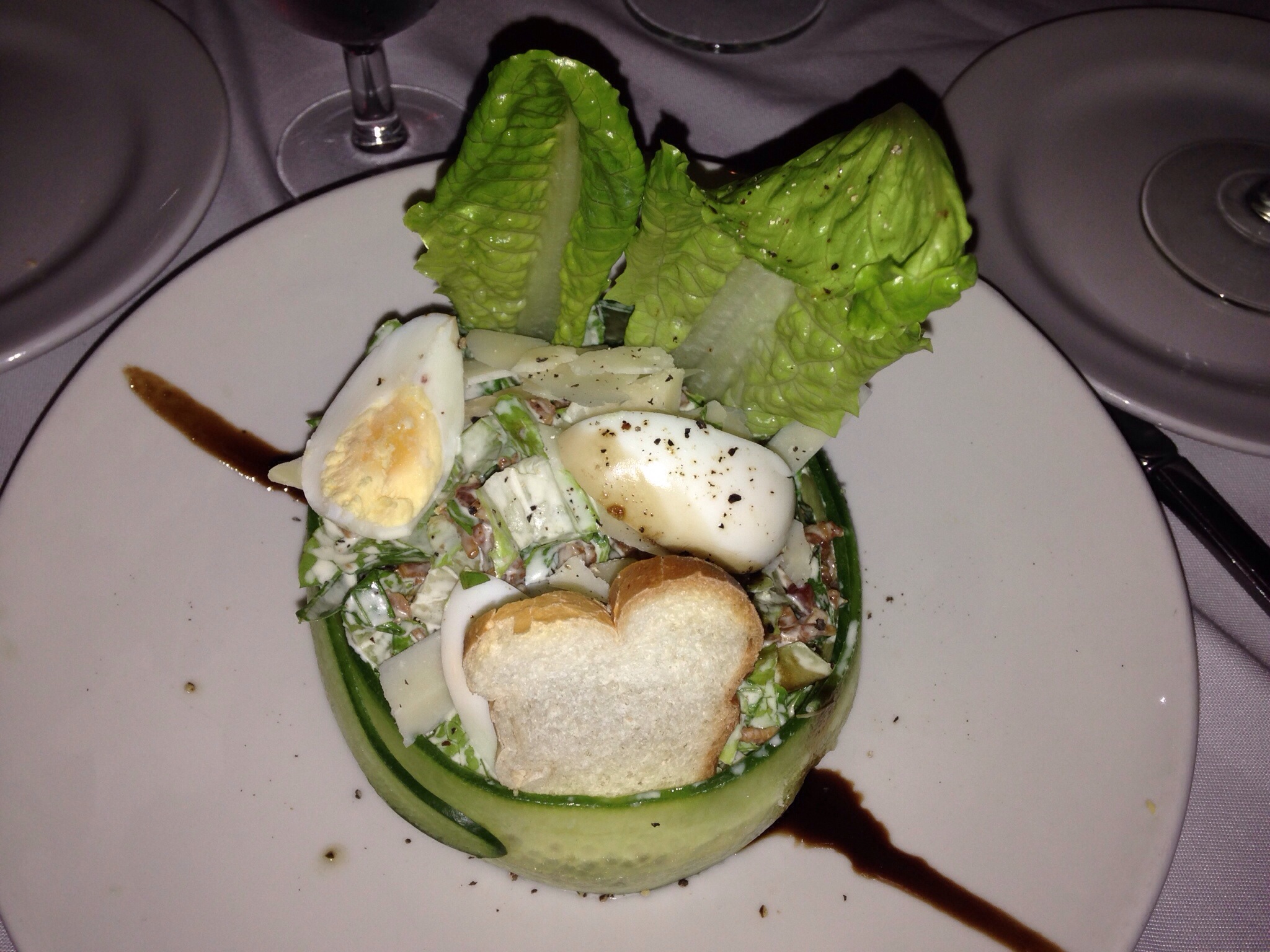I had the Caesar salad, I can honestly say this is the best I have ever eaten. They met all of the criteria of the traditional Caesar but added a few twists, they made a sort of bowl type arrangement with the cucumber slices, even though a traditional recipe doesn’t cater for cucumber, it worked. The creamy dressing was nicely distributed, there were crunchy small bacon tidbits, boiled eggs, small homemade croutons and some smooth bone free bits of anchovy. And proper cos lettuce. Really, just perfect.