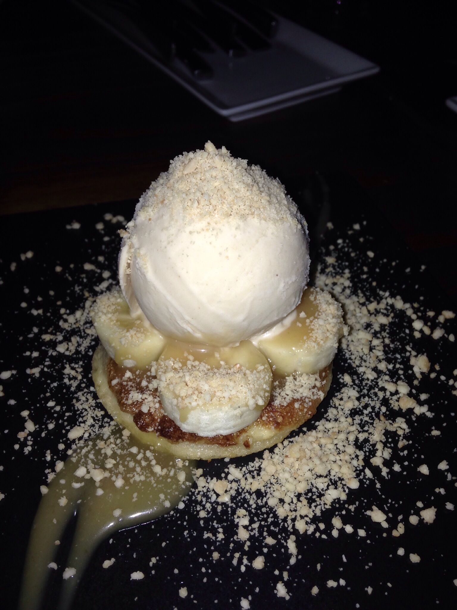 Cait and Vic went off to a party and the rest of us ordered coffees and desserts. The birthday boy chose the Apple Pie with Sour Cream ice cream and Lily had the blonde chocolate fondant with vanilla ice cream and a chocolate truffle. I had the banana brioche which was a toasted brioche with sliced banana and drizzled with toffee sauce, topped with a scoop of peanut butter ice cream. So so delicious.