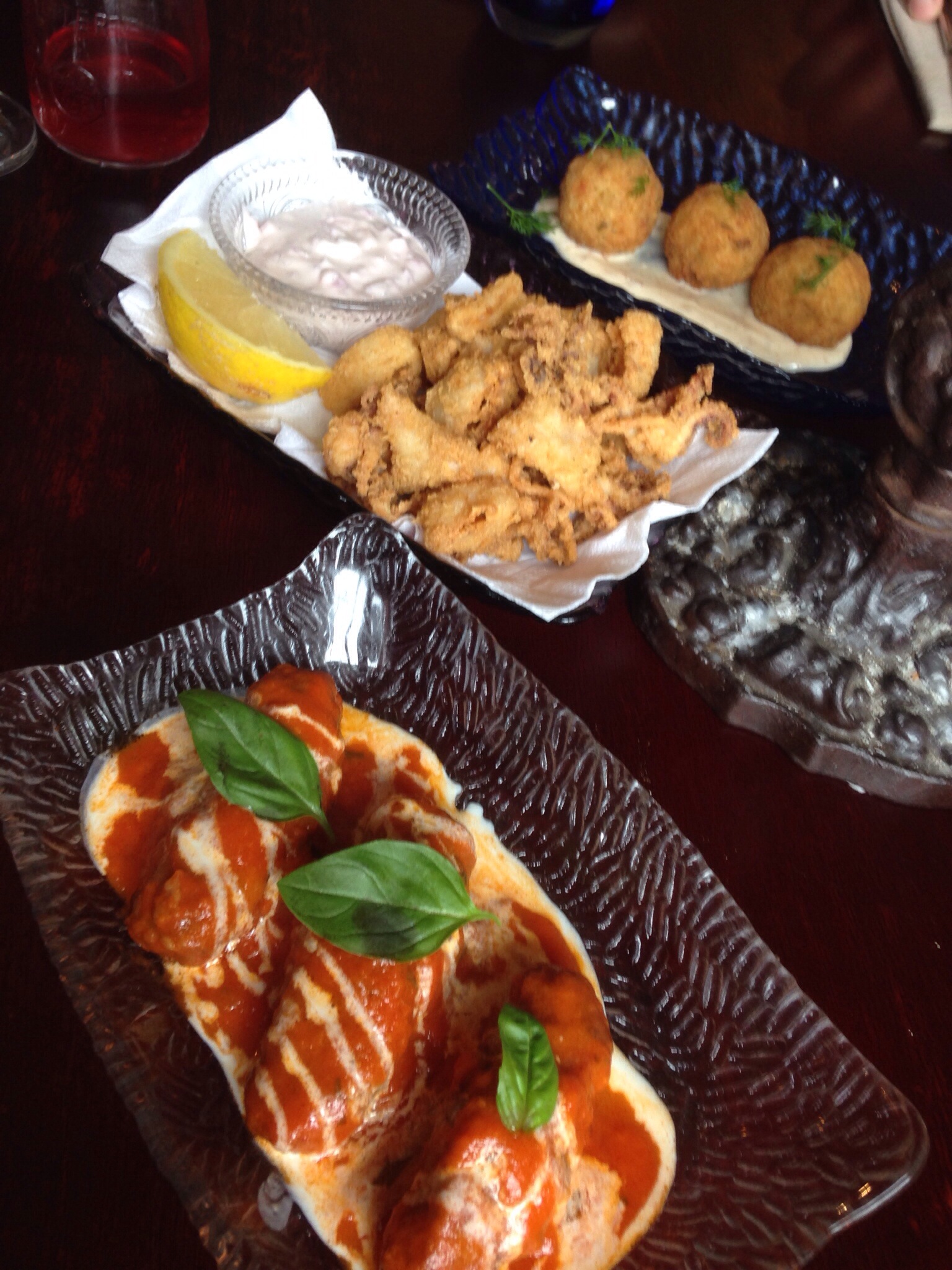 For starters we ordered a few things to pick at, the crispy calamari with chunky aioli, the kofta meatballs and the fish croquettes, all of which were perfectly cooked and flavored.