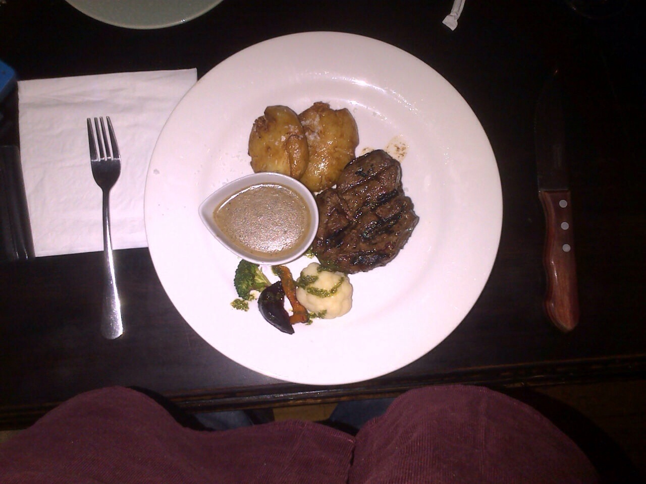 We then had our main, I had the 200g fillet and Norm the 300g fillet. The 300g is R149 with sauce, smashed roast new potatoes, and a few roast veg bits.