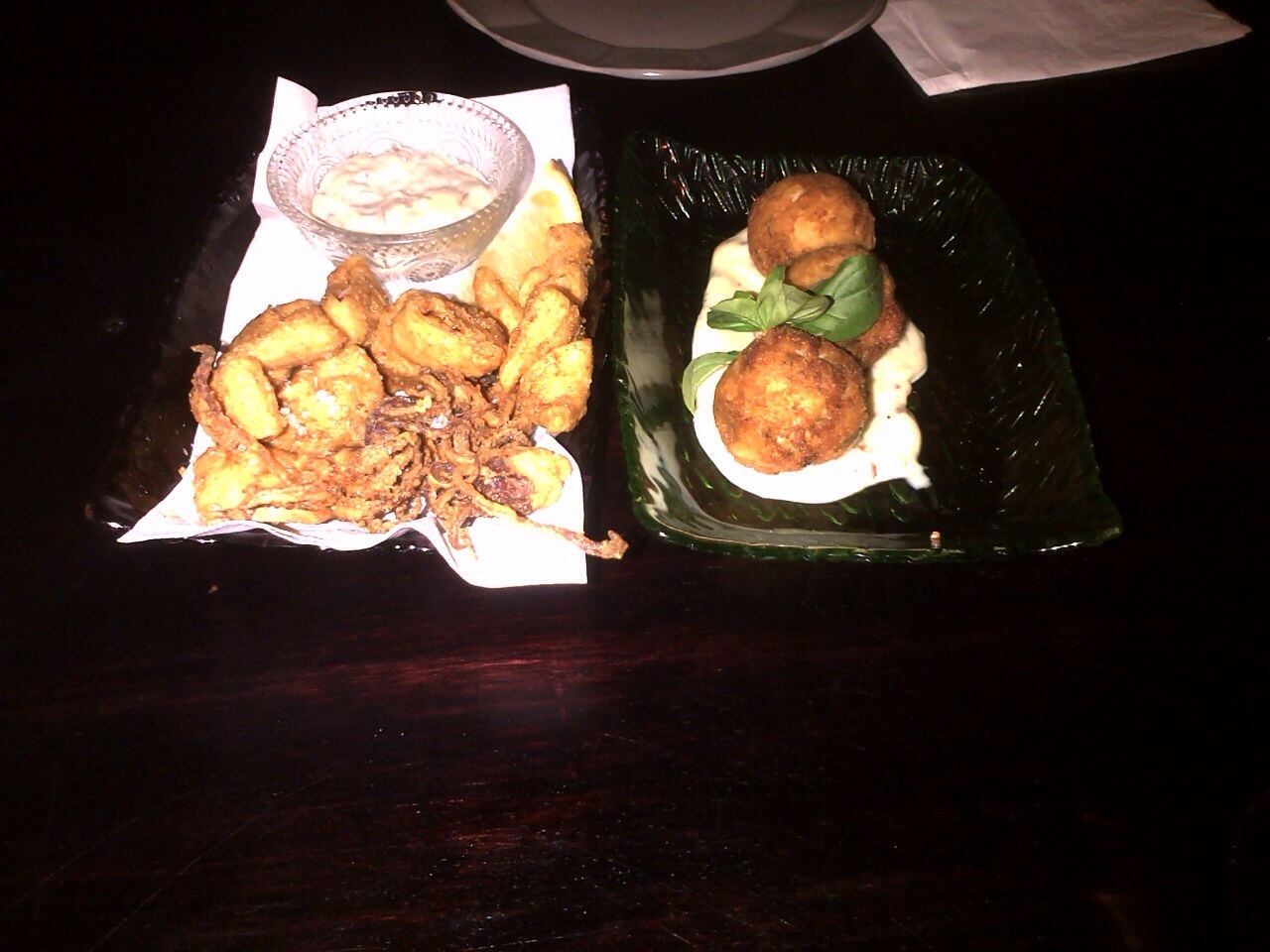 We moved to a lovely corner for our usual starter of fish croquettes and crispy calamari. Gorgeous as always.
