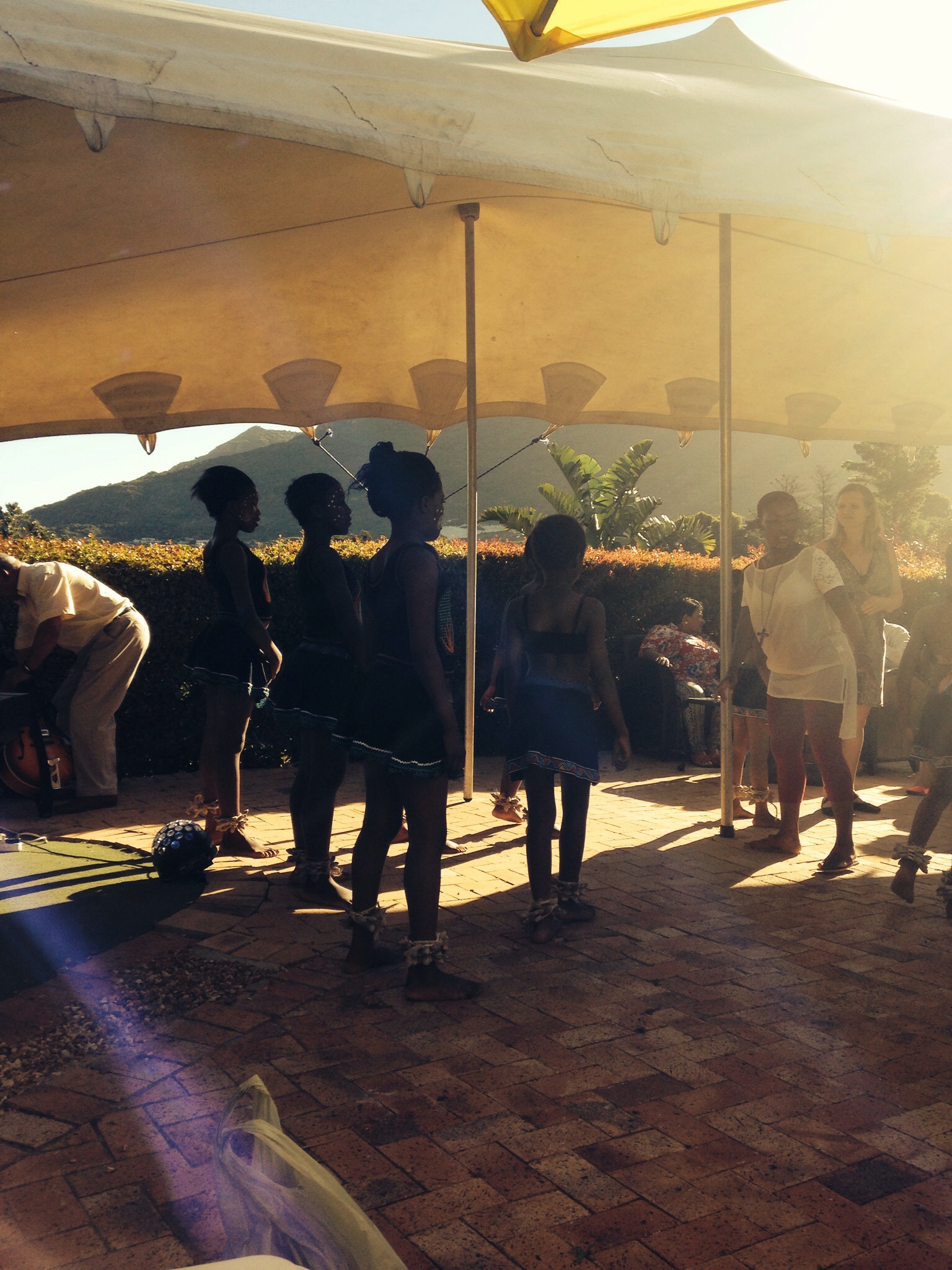 The girls were so adorable and all were wearing African face paint and had little shells full of beads tied round their ankles so each step generated a lovely sound.