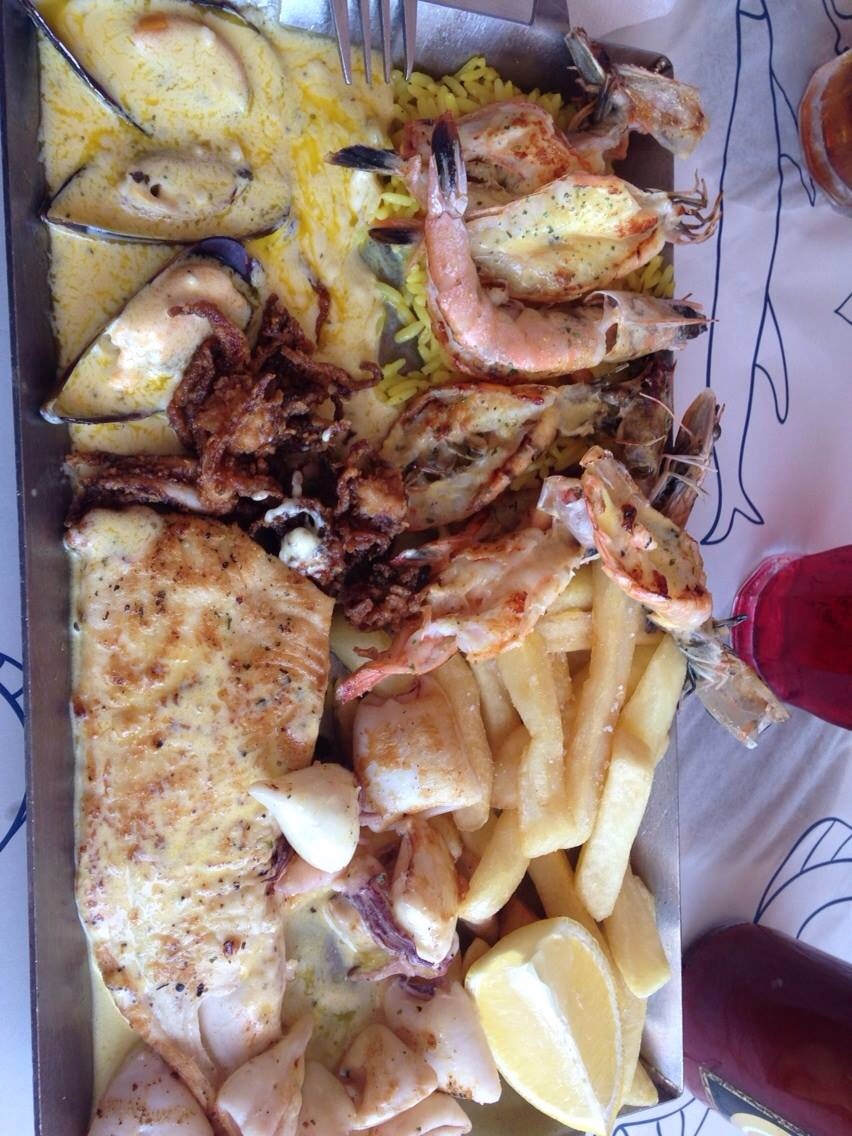 I had the seafood platter for 1 which had a delicious piece of hake, prawns, calamari rings and heads, mussels, rice and chips. It was a feast for R110 , which is about $10USD. So, very cheap. We all laughed and had a few drinks, other than Cait who was our designated driver. We had a lovely afternoon.