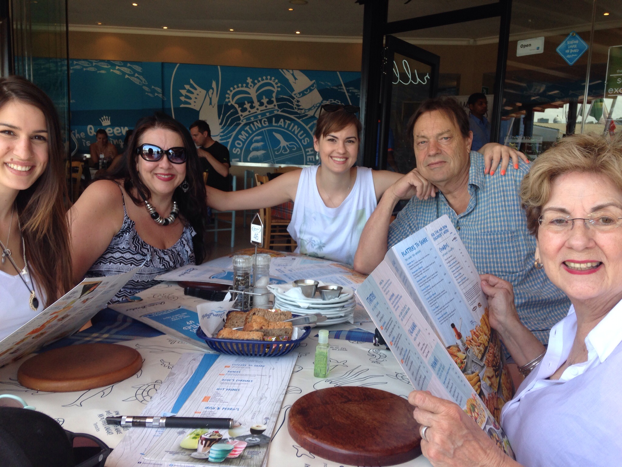 We went to Knysna and had a wander round the shops. Mom remembered several shops which she had been to when here years ago and most of these no longer exist other than the bead shop. But we had a walk around the waterfront and the kids’ Dad Hugh joined us for lunch.