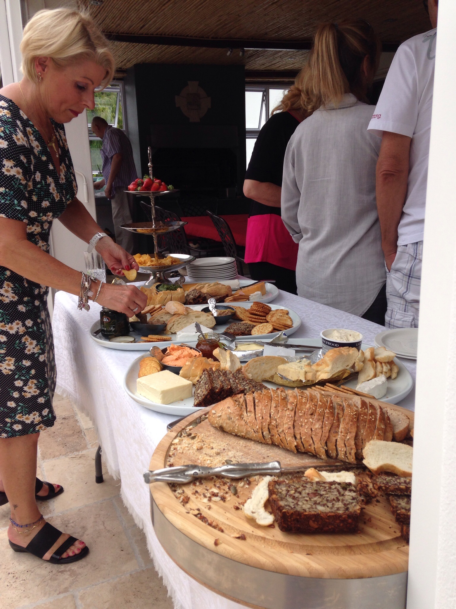 On Sunday we were invited to our friends’ Andy and Alison’s Summer Solstice party and we trouped off en masse to enjoy a special afternoon. The owner and chef from Pescarne catered the event. He kept it simple, there was a table of starters with crackers, breads, cheese, spreads and other snacks, and a main of a chicken and cous cous salad, big slabs of fillet steak, roast potatoes, topped by either pepper or mushroom sauce. It really was divine.