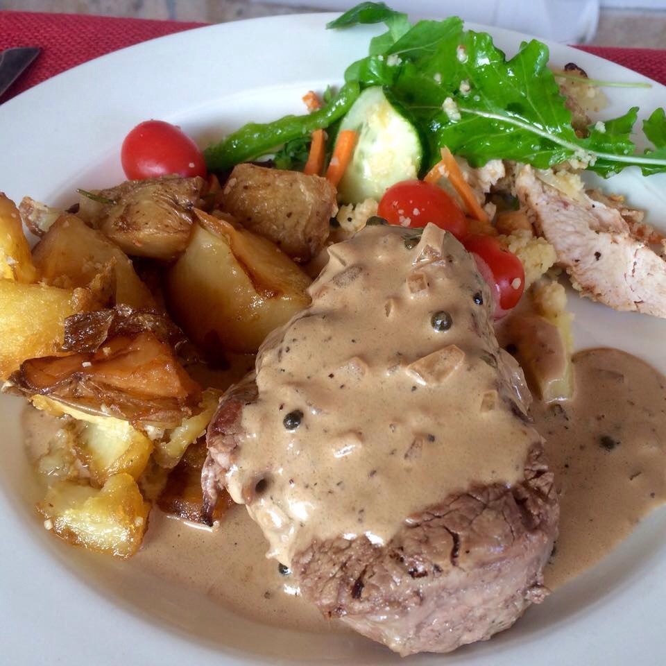 The food is consistently good there – however this time the service was abysmal, the waitress was miserable and pushy. I felt so rushed, however she had told us at the start that the kitchen was really busy so we should order starters. We ordered cheesy garlic bread and then I had the fillet steak. I also had a few strawberry daiquiris. The food was great but we felt pressured to eat and bugger off with the abrasive waitress actually trying to clear my friends plate while she was still holding her cutlery.