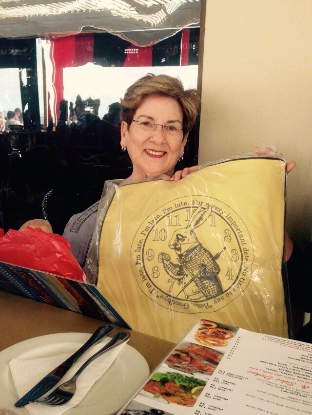 We went to Chinatown at Century City and then met my friend Di at Maestro’s on the Beach. I had ordered a Cushi for my mom who loves Alice In Wonderland and we were meeting up to collect it and intro my Mom to Di. If you are looking for a cool gift, Di can make a Cushi with any design. http://www.cushi.co.za