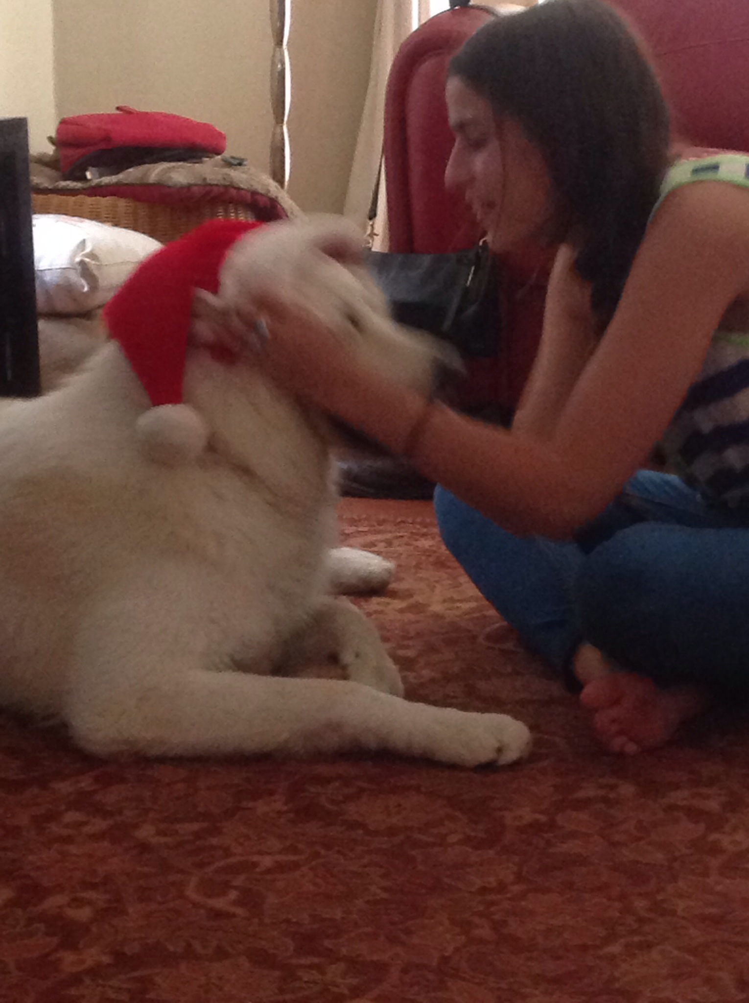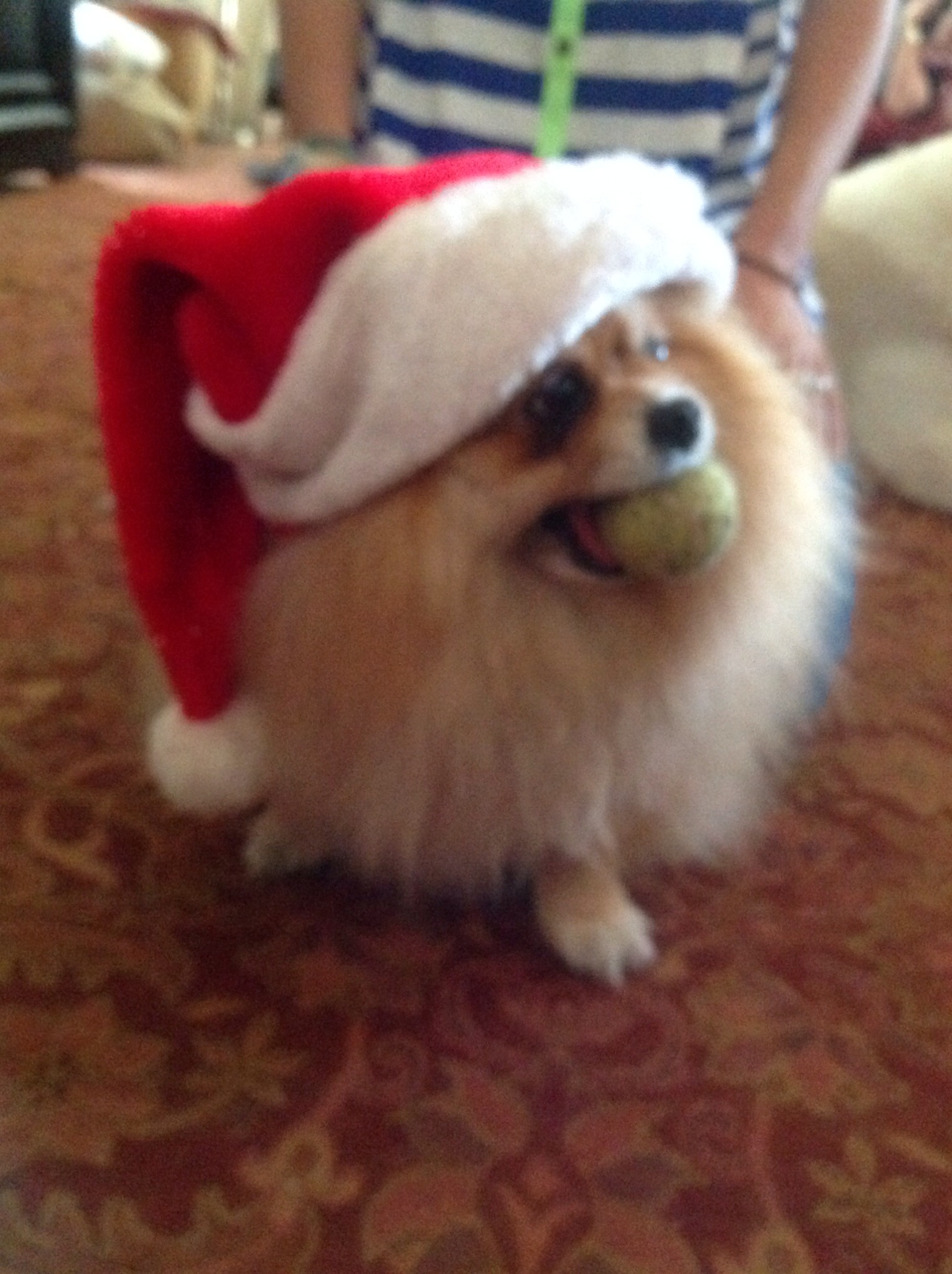 My son flew down on Christmas Eve and I made a southern style meal of ham (gammon) cooked in coke, brown sugar and pineapple juice, potato salad with chunks of boiled eggs and browned onions in a sour cream, hellmans mayo and mustard sauce, baked beans in brown sugar, Worcester sauce, tomato sauce, onion and garlic. I also threw in some rosa tomatoes and baby mozzarella balls. We had a loaf of fresh ciabatta bread. My mom had brought vanilla wafers and pudding and made my childhood fave of banana pudding, after eating like pigs we tried to get the dogs in the spirit,