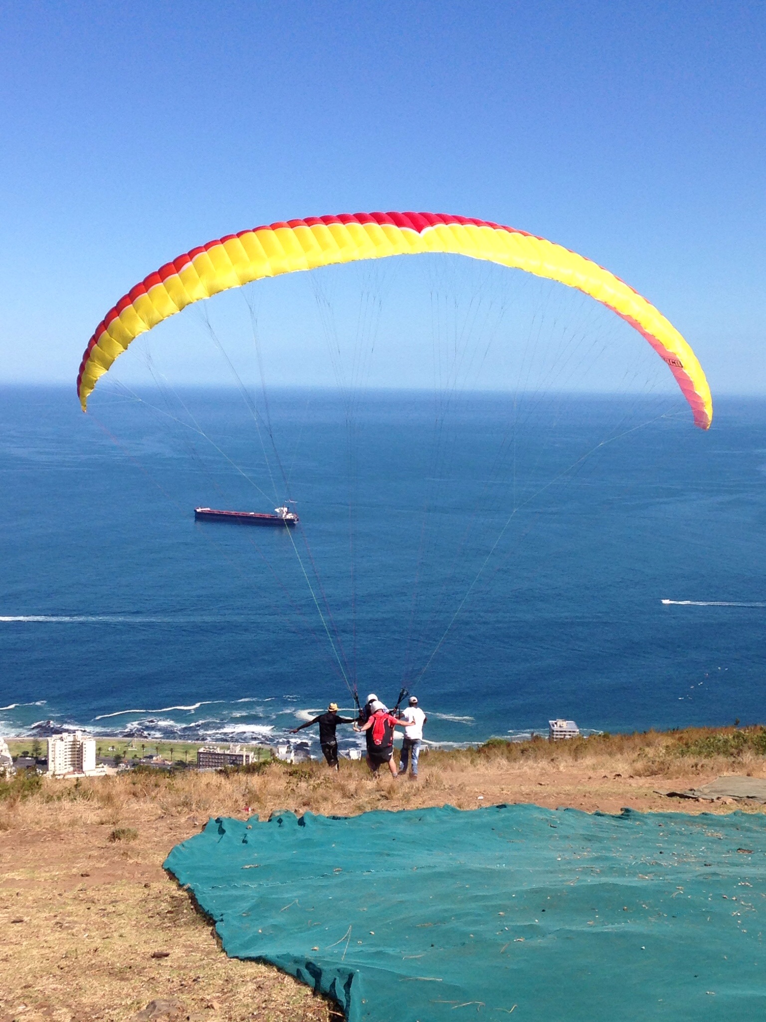 Today we got up early and rang to see if the weather was fly-ready as I had booked Trevor in to do a paragliding tandem jump off of Signal Hill.