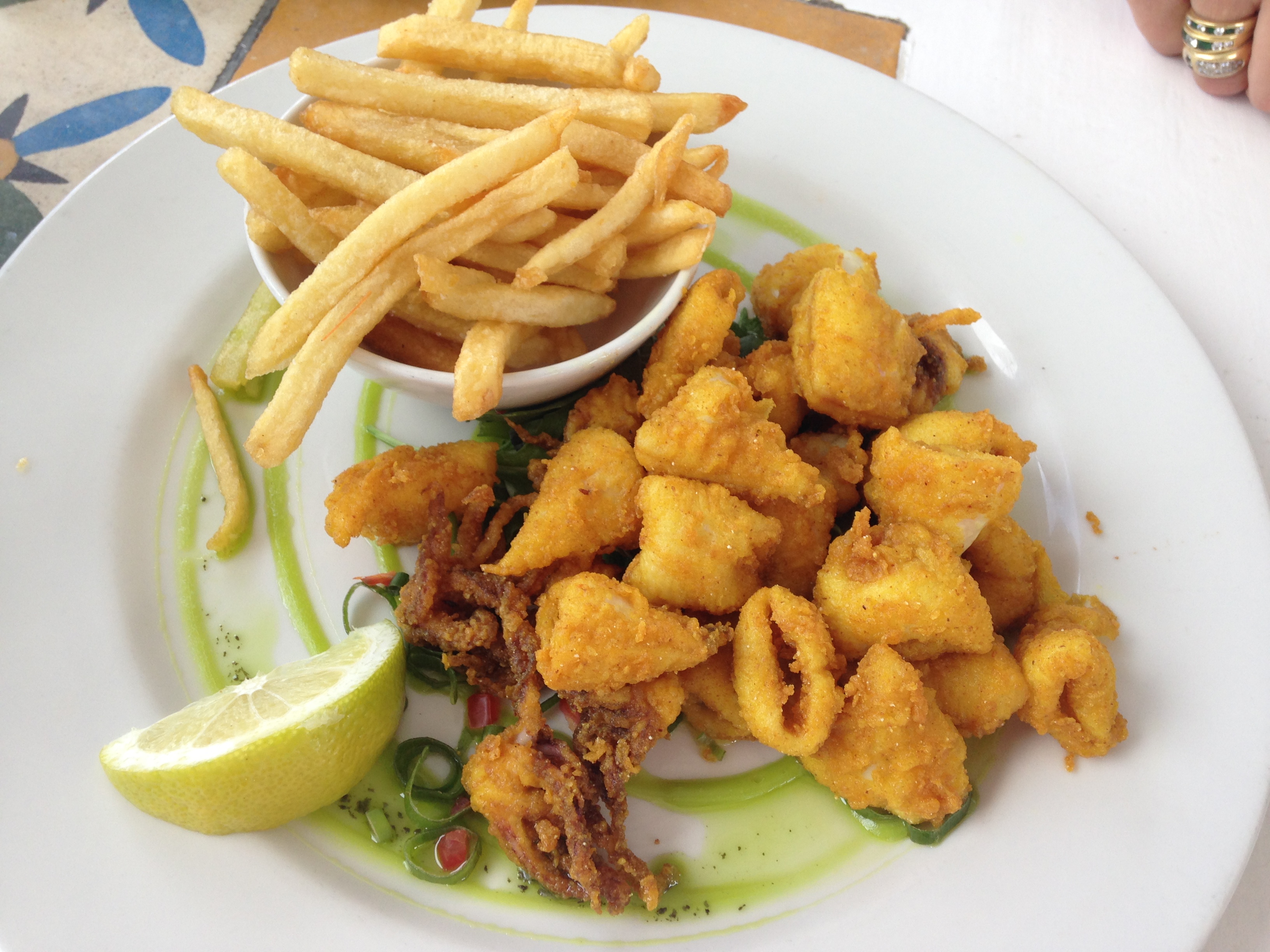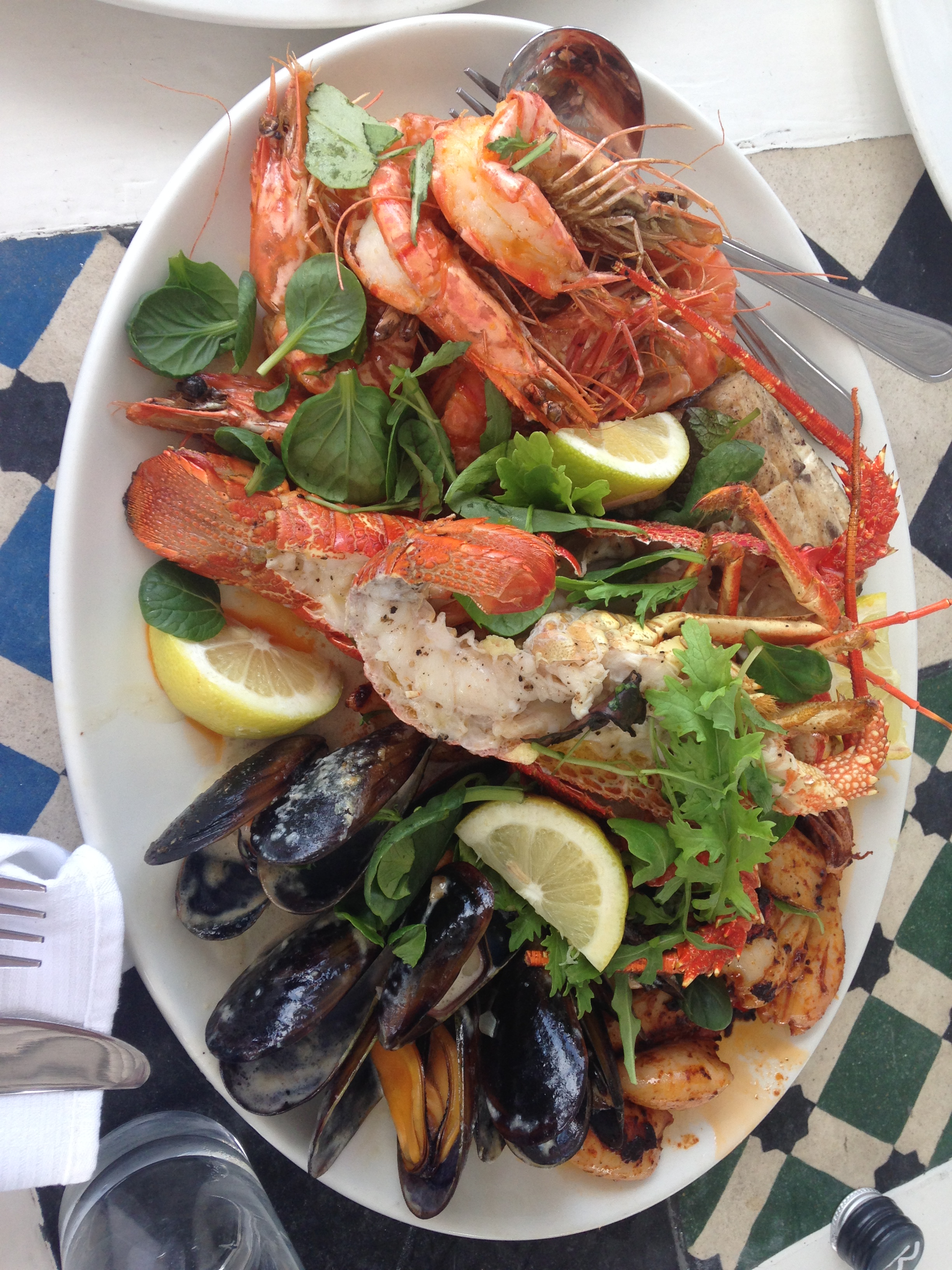 and the seafood platter special for 2 people which was on for R330 which contained mussels in a gorgeous white wine and garlic sauce, grilled prawns, line fish, pan friend calamari cooked with chorizo and peppers and a whole crayfish. I adore chorizo and it really gave the calamari a gorgeous flavour.