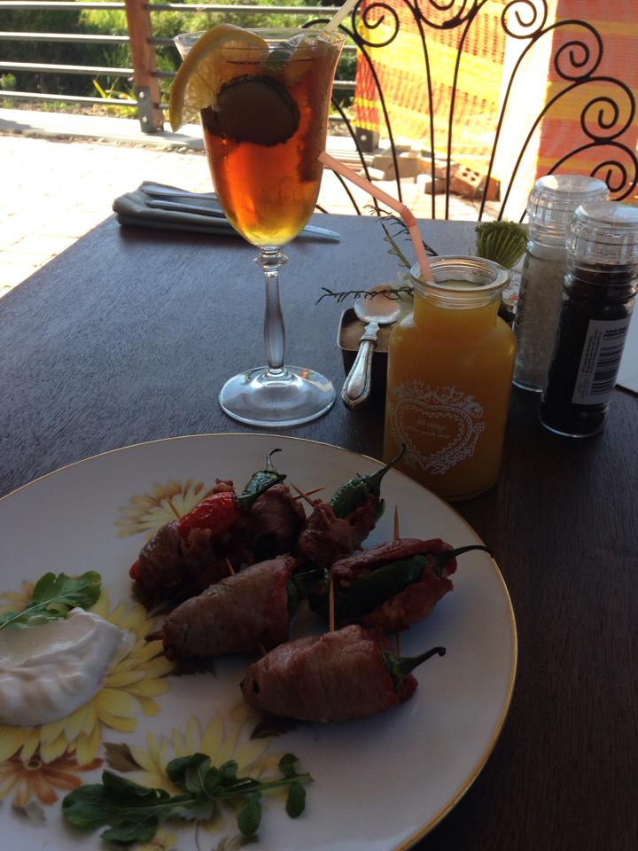 It was incredibly hot, over 30 degrees Celsius so we had to have a refreshing cocktail and so I had a Pimms. I had just left the docs and I didn’t follow his orders very well.