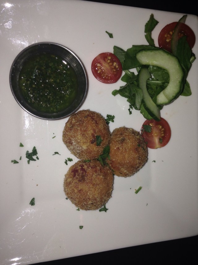 I chose Eisbein Risotto Balls for my starter. It was really delicious. The risotto balls perfectly crispy, the risotto creamy and soft and with a deep smoky flavour of the Eisbein coming through. It had a pesto dressing which was on the side, I was glad to see that as pesto is not my fave but this was mild and not overwhelming. A nice accompaniment to the rich risotto. It had tangy baby tomatoes and the acidity of them was a nice balance.
