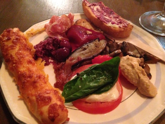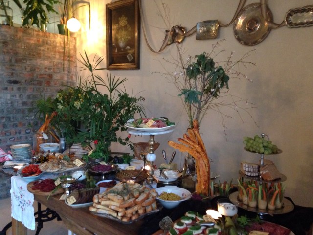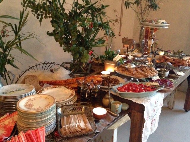 There were platters of ostrich carpaccio, Parma ham, grilled chicken breasts, grilled baby Aubergine slices, ripe lucious tomato slices topped with creamy mozzarella, chunks of rich salty feta, various dips, tapenade, hummus, many different cheeses, fruit, breads and all manner of wonders.