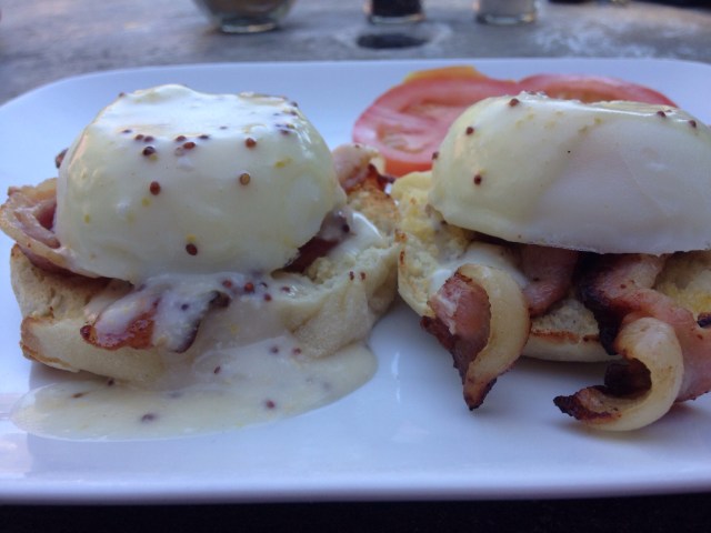 We finally chose a big creamy pot and a few petunias as well as a vine. I adore vines. We had a bit of lunch and a cappuccino. Not the best poached eggs as the bacon was a bit half cooked and the egg yolks were overcooked. But it was edible.