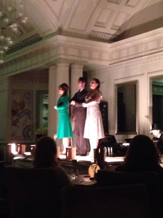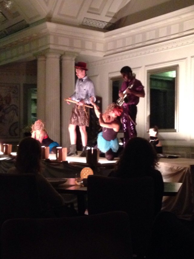 The stage was set up in the centre of the restaurant and the 3 courses were served to align with the 3 acts.