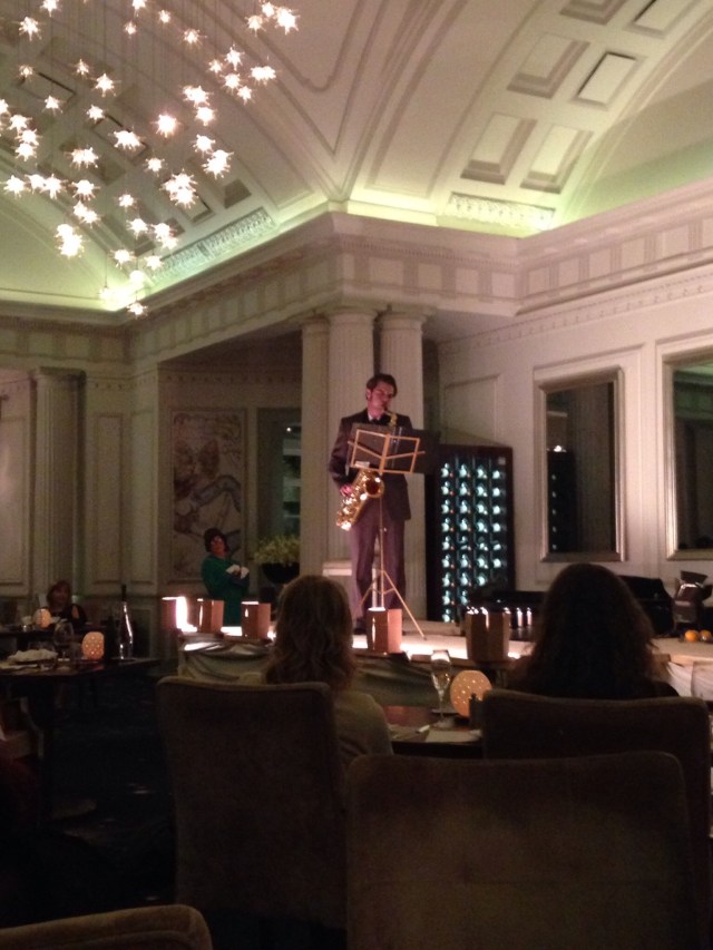 We were shown to a little conservatory type room off the main restaurant for bubbly and canapés on arrival and then we headed into the restaurant for 7pm.
