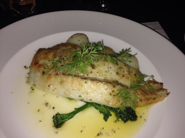 The fish was lovely, plump and moist and buttery. It was on a bed of long stemmed broccoli and baby potatoes. It was so delicious.