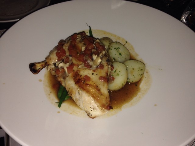 While eating our starters we watched the 1st act of the play which was a woman’s perspective on seeking a suitor and a spouse in 1946. I suspect if I had to adhere to the restrictions put on women in that era I would have ended up as a trouser wearing cat loving overweight lesbian who smoked a cigar.