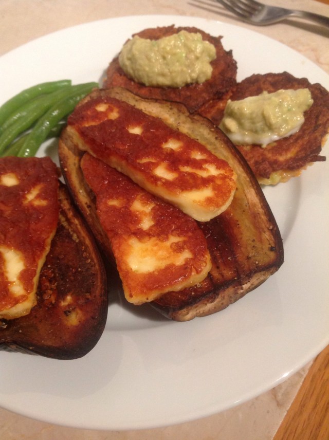 Tonight Caitlin and I cooked. We made kohlrabi and carrot fritters, baked aubergines, green beans and grilled halloumi. It was divine. I made an avocado and yogurt sauce for the fritters. All the veg were grown locally as part of the Harvest of Hope project.
