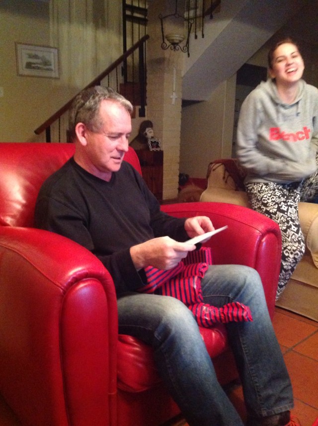 They also had shopped for lots of goodies for Norm for Fathers Day. He received lots of things he loves like a bottle of wine, chocolate chip cookies and quality street chocolate as well as things he needs like warm winter socks. He was very pleased.