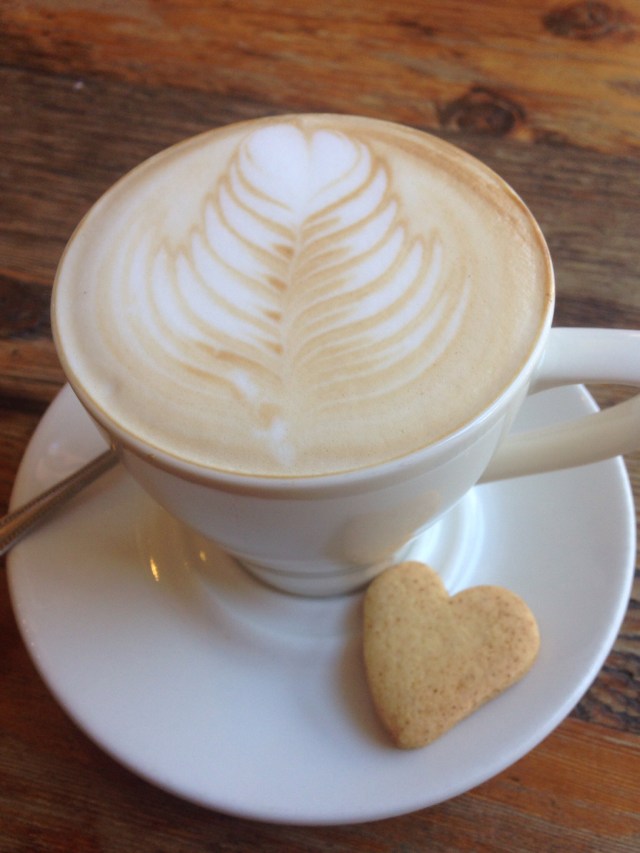 They serve the cappuccino with a charming little shortbread heart shaped cookie.