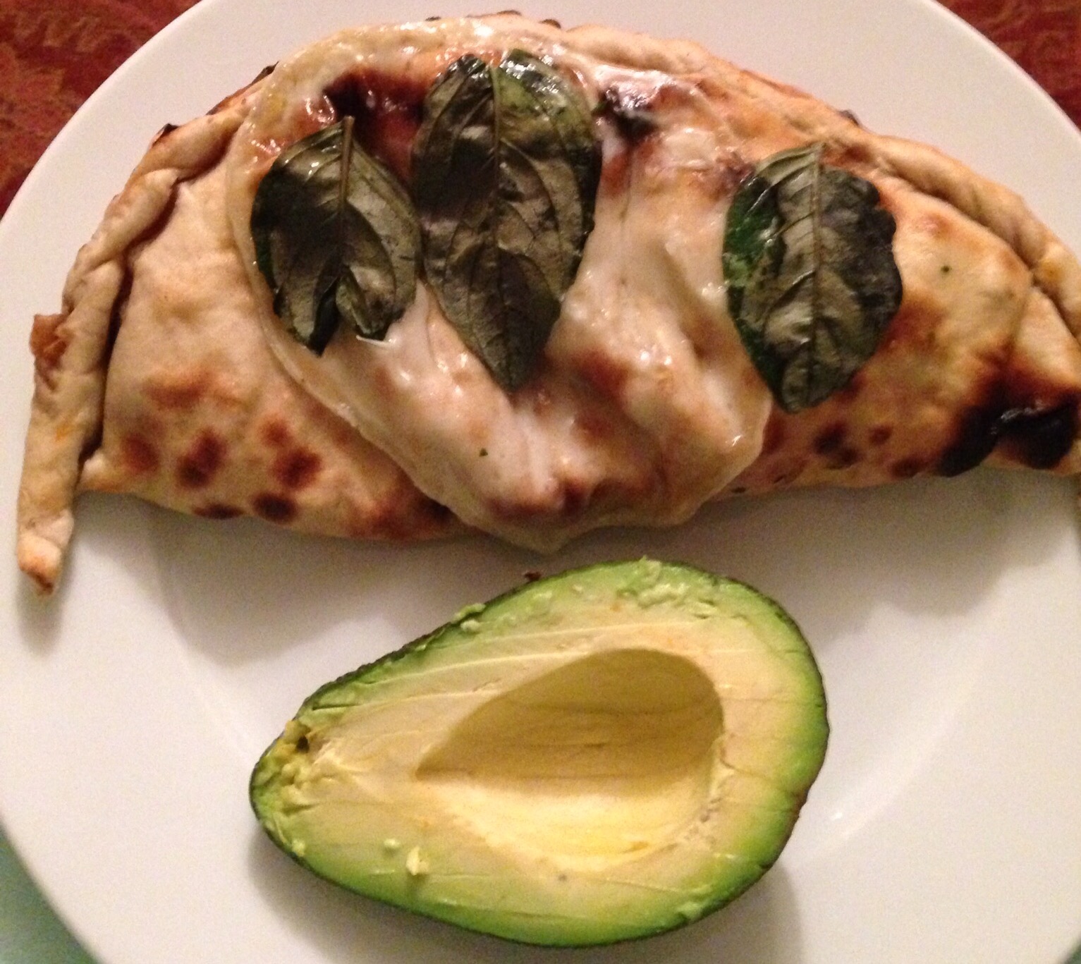 Caitlin got the Happy Valley Calzone – stuffed with ham, mushrooms, mozzarella, feta, caramelised onions & cacio cheese, served with sliced avocado.
