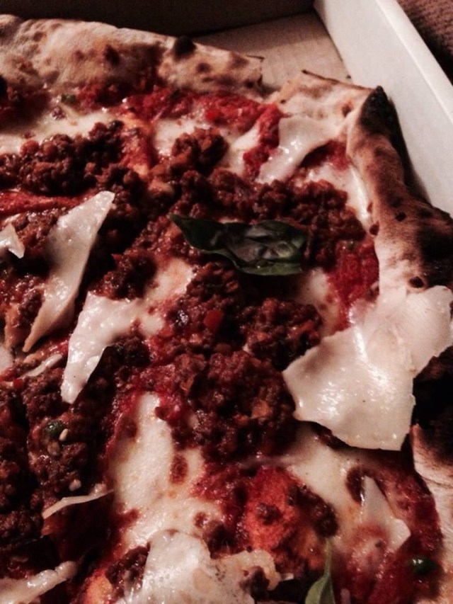 As mentioned we tried Mimmi’s and I decided on the Pavarotti which is tomato, mozzarella, Bolognese sauce, parmesan shavings for 110 and a potion goes to the Sunflower Fund.