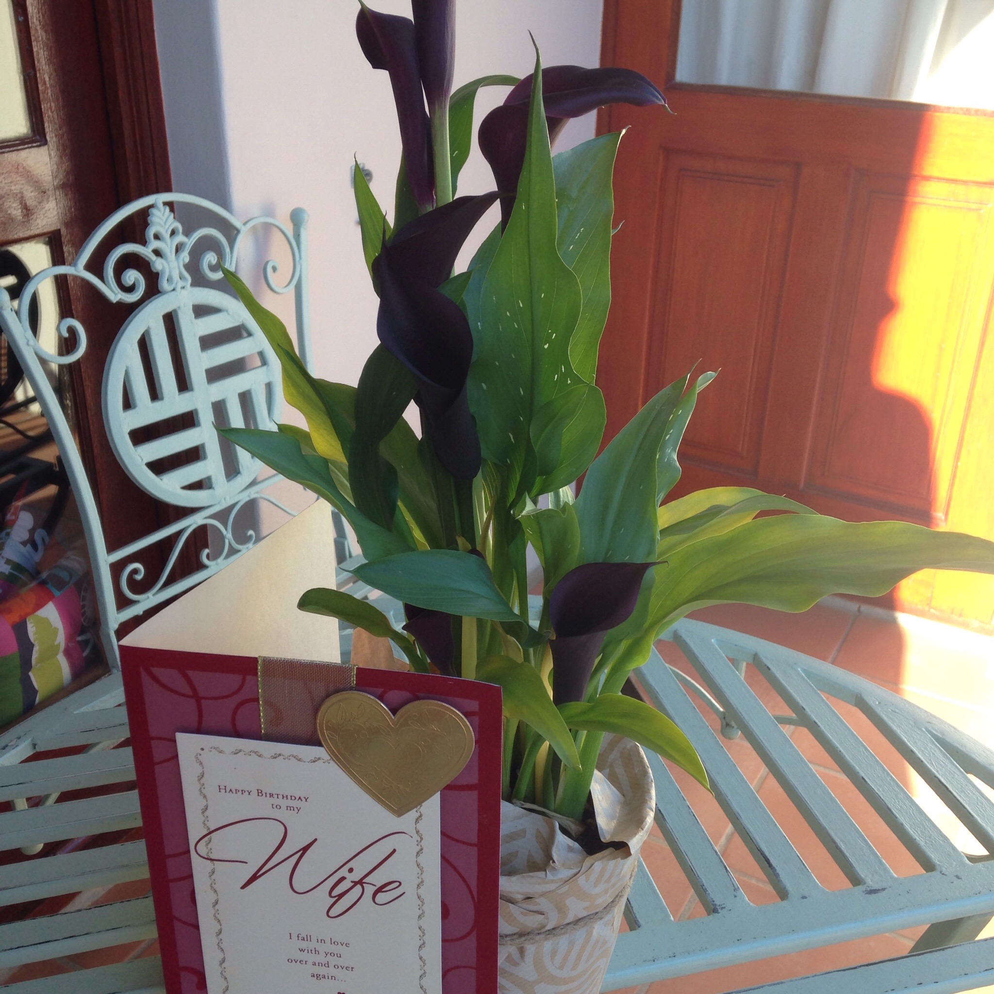 Lily came through singing Happy Birthday and carrying a stunning black lily from Norm in absentia and a card.