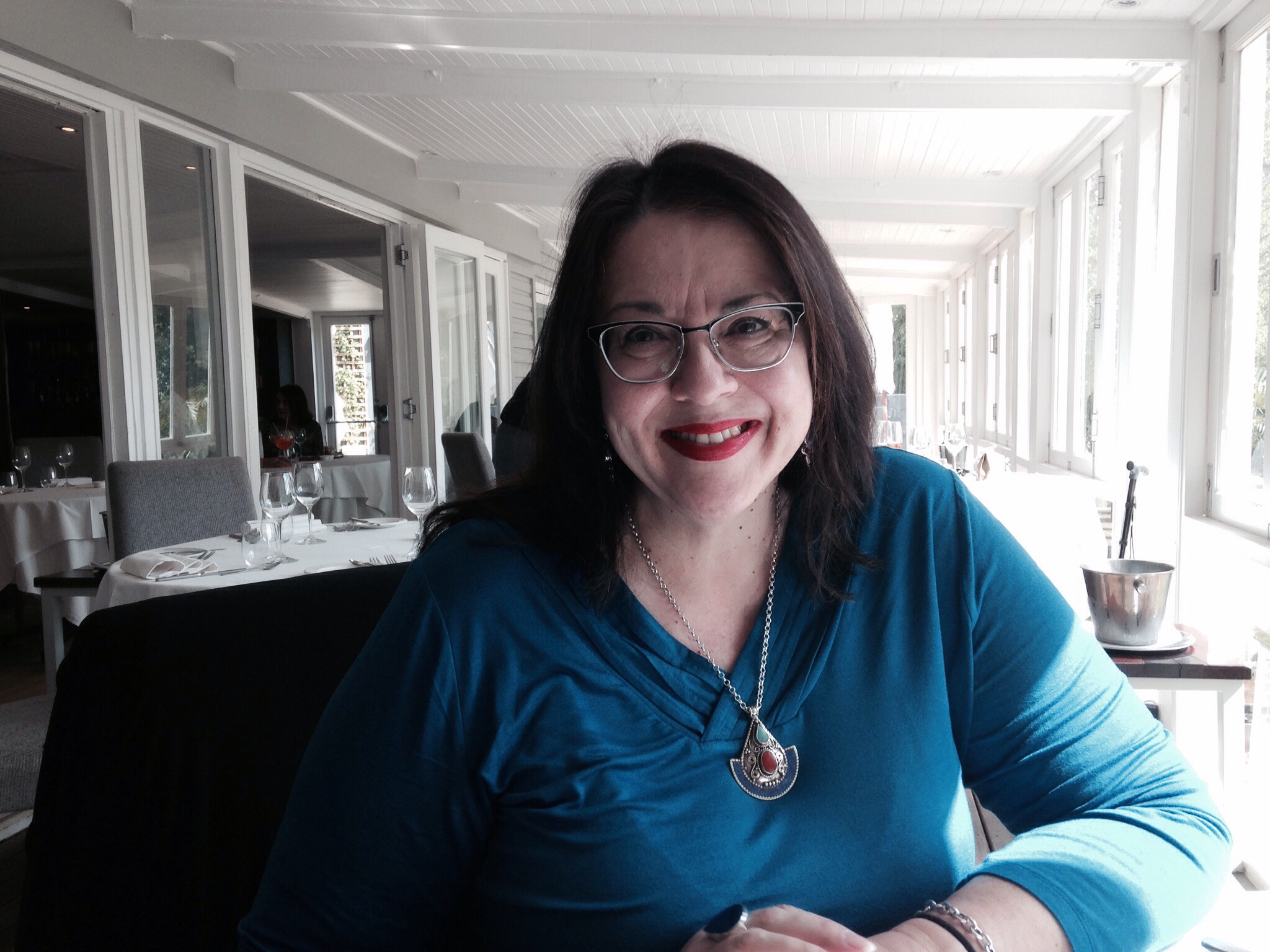 We had seats right by the window on the bright veranda. Note new necklace getting an outing.