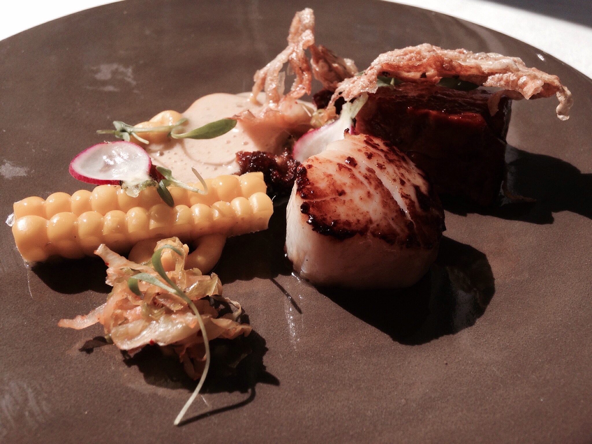Next we had the SCALLOP AND PORK BELLY: Pan fried scallop, Asian style pork, kimchi, sweetcorn, lemongrass and ginger velouté.