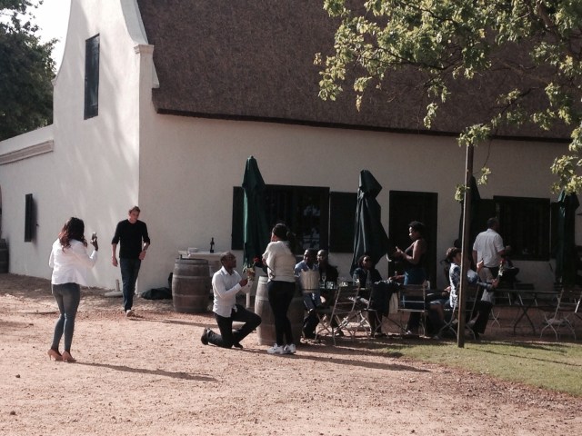 Friday we had plans to meet up with some friends of Norman’s sister who are over on a holiday. We collected them at their hotel in the foreshore and drove round the city to Constantia. Norm wanted to get me fed as my blood sugar was low and I was being a pain in the arse. He suggested Green’s as the food is always good there, but I thought regardless of the food, we couldn’t take overseas visitors for lunch in a strip mall and instead suggested Groot Constantia Vineyards. There are a few different restaurants there and we stopped at Jonkershuis to see if we could get a table in the sunny outside area. We were in luck and settled in and ordered a bottle of wine and perused the menu. As I knew we were going to the market later I didn’t want a big meal so both Linda and I ordered the Caesar salad.