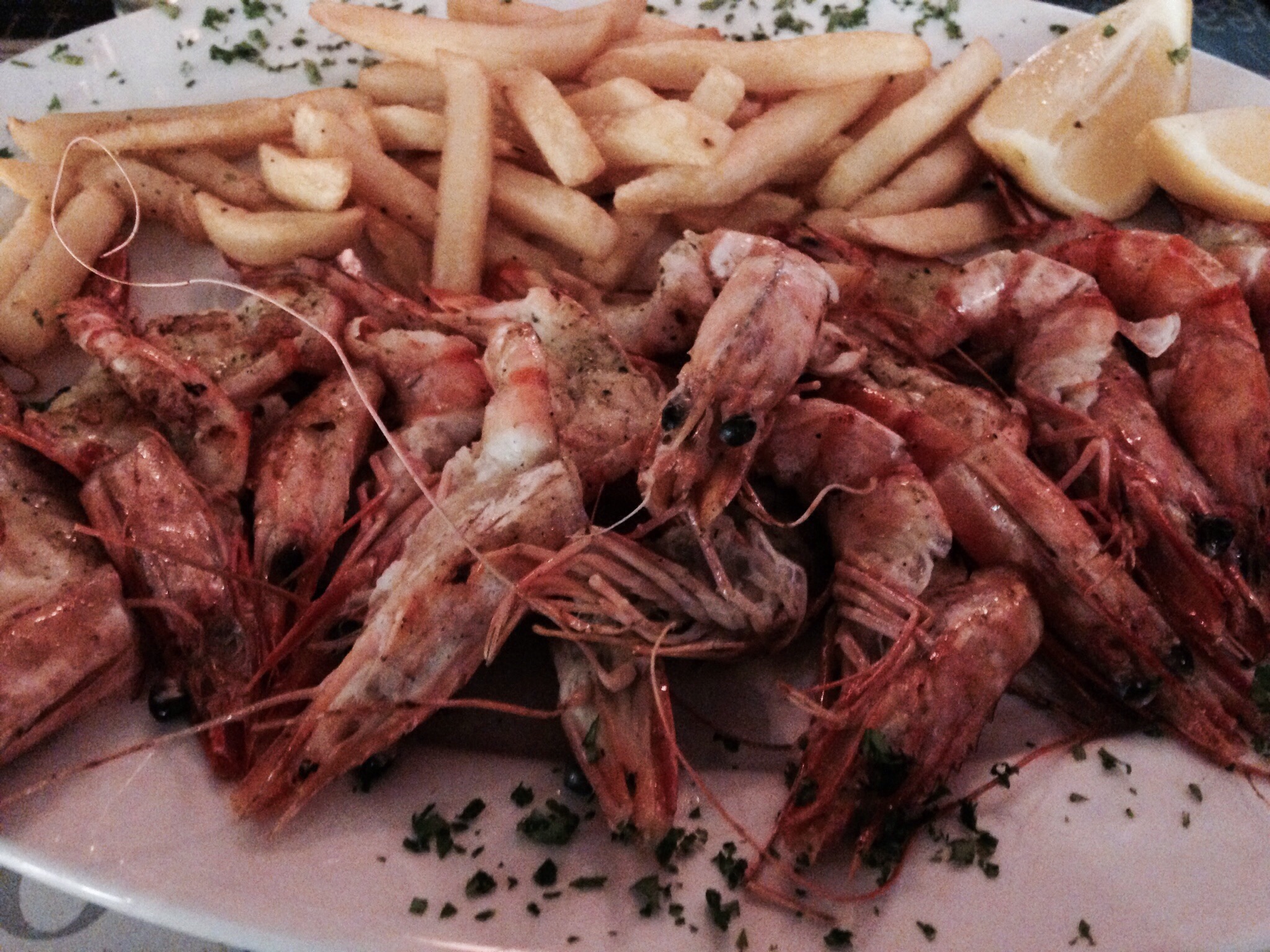 My regular readers will know that Pescarne have had an identity crisis about serving their prawns. This time there was no lemon butter on the prawns, they were a bit dry. I wish they would settle on their preferred method so I know whether to ask for butter or not. But they were nicely cooked. Just dry.