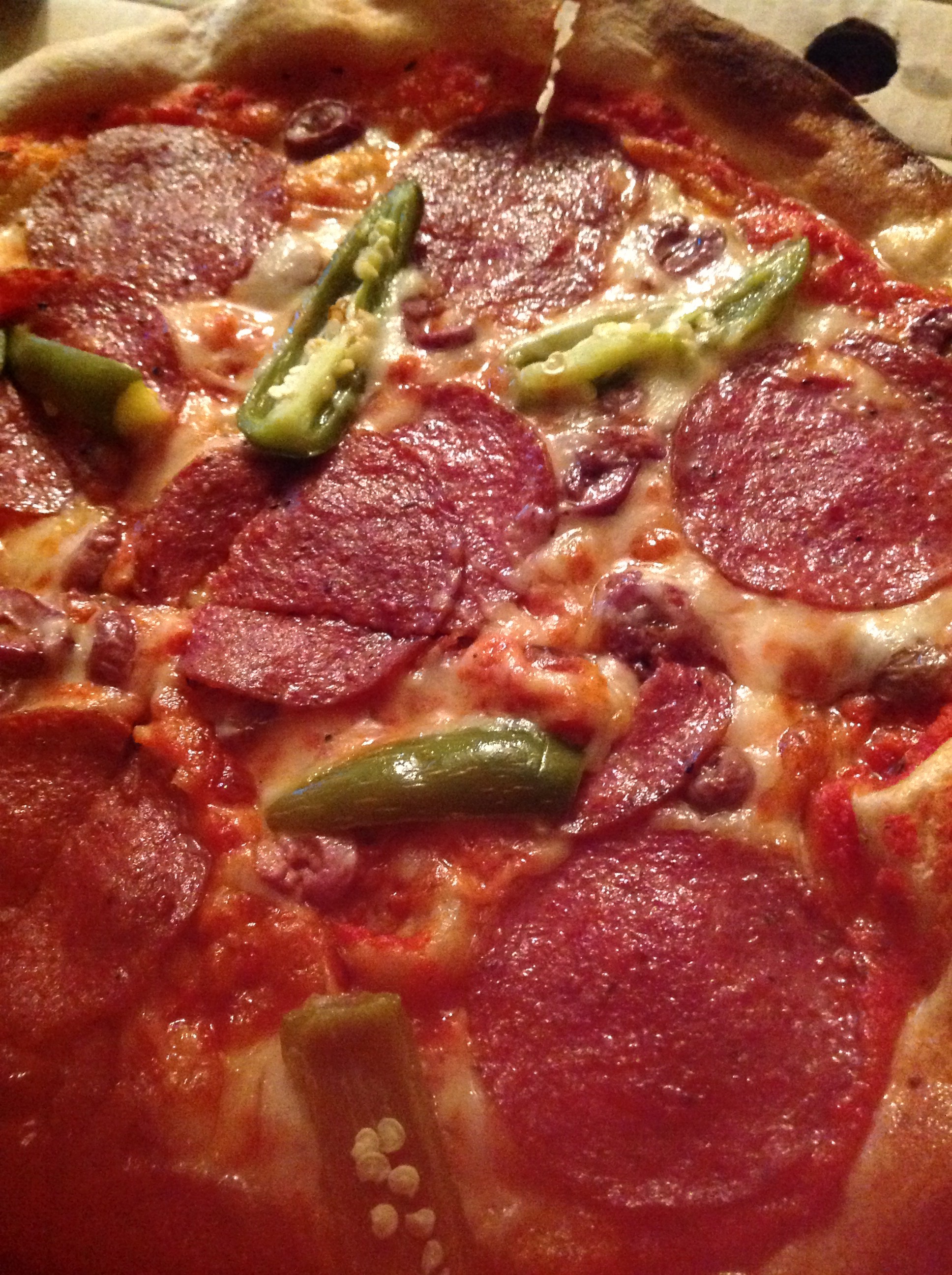 We ordered pizzas again (don’t look at me like that I like pizza) and of course I had Mimmi. I had the salame with jalapeños instead of the mushrooms.