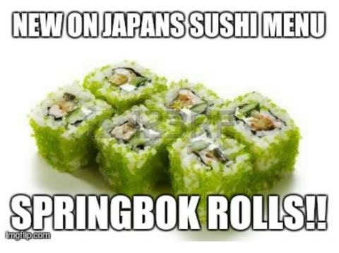 By the way, the SA Springboks got their arse kicked by Japan. The less said about that the better. We won’t even draw attention to the fact that later in the week my beloved Scotland caused some cherry blossom damage.