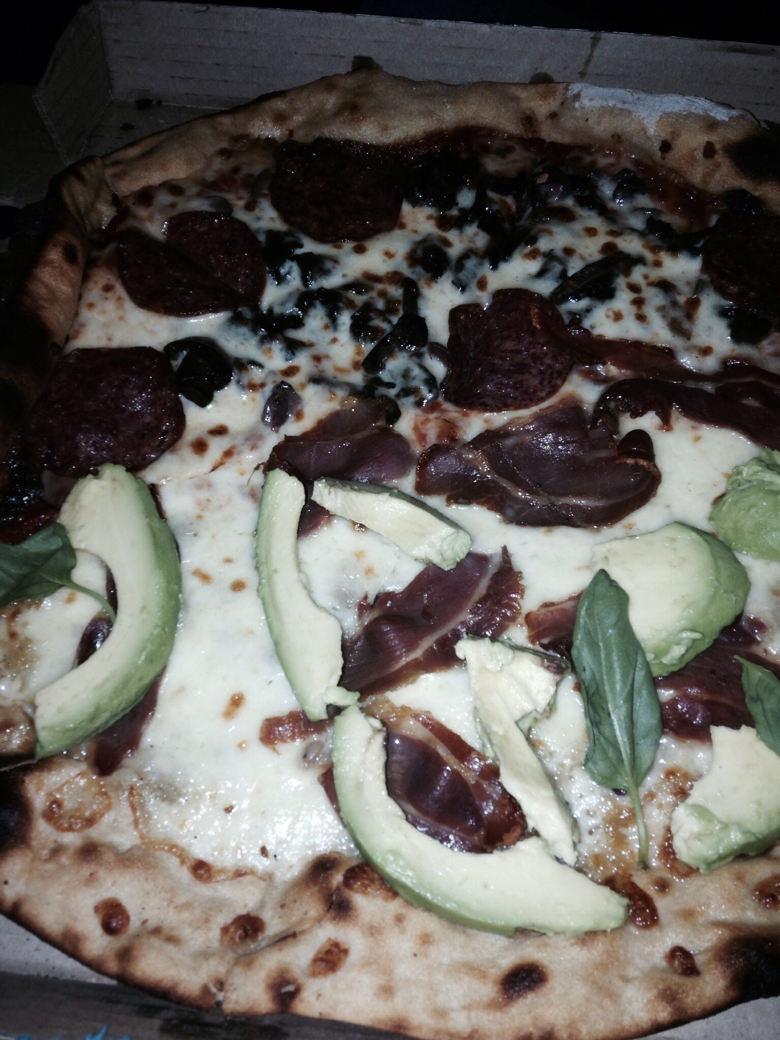 As I only got back to Hout Bay at 6.30 we decided to get take aways. Lily and Norm had cassarechio ravioli and Caitlin and I had pizza from Mimmi To Go. I opted for a half and half. I got half Salame – tomato, mozzarella, salame, mushrooms, olives and half Manuel – olive oil, mozzarella, cooked Parma ham, avocado, basil.
