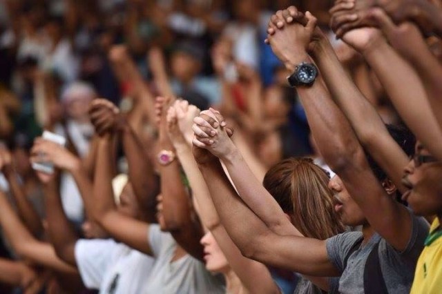 And they held hands in unity.