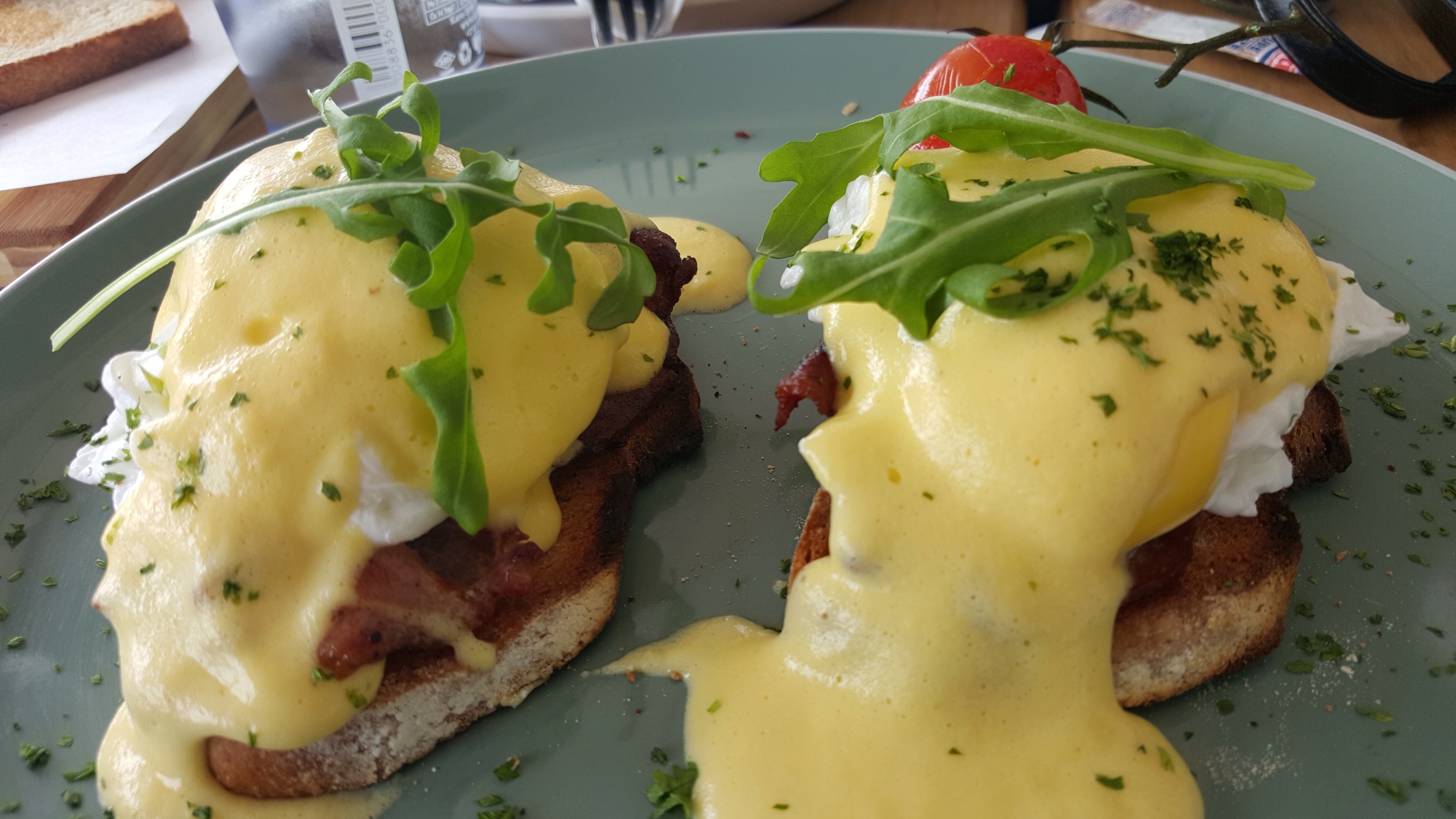 My eggs were done exactly as I asked, soft centre and no slimy whites. My bacon was perfectly crisp. I was interested in how the sourdough bread would work as a base but I really liked the dense texture and it was toasted nice and crisp the way I like my toast. It was as if I made it myself and that is a compliment in that it was exactly how I liked it, not a boast as I would never be able to achieve that perfection myself! I loved the hollandaise, it had a lightly lemon tang, nice and creamy and rich. So divine.