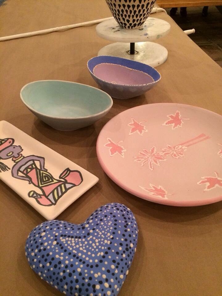 I painted the skewily spotted heart. It will go a bright blue when fired.