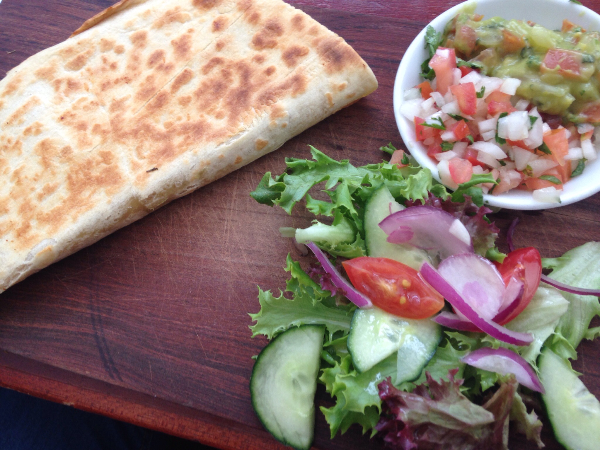 My company director had the quesadilla with shredded chicken filling.