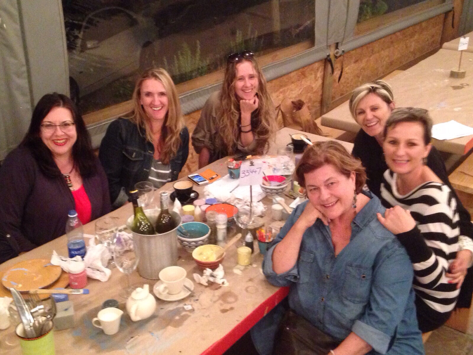 The wind was howling that night something insane. As the area where you paint is just a patio they had dropped down the plastic weather guards and they banged and battered. It felt a bit like being on a boat. It was brisk and breezy but we had a good evening. We always have a laugh.