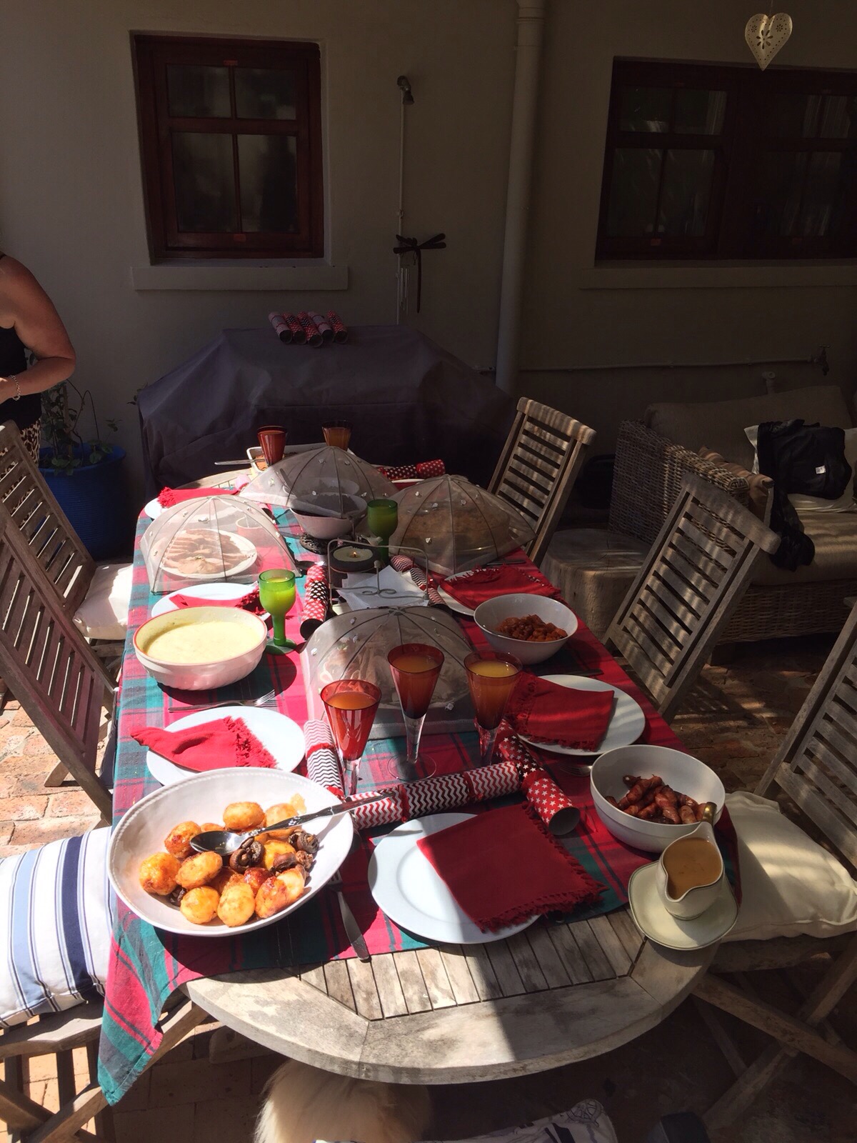 My son Trevor and Amber his partner drove down from The Wilderness which is about a 5 hour drive up the coast from here. Josh drove down as well. They all arrived in the afternoon. We have our traditions and on Christmas Eve we always have a roast gammon, potato salad and baked beans, all cooked American style.