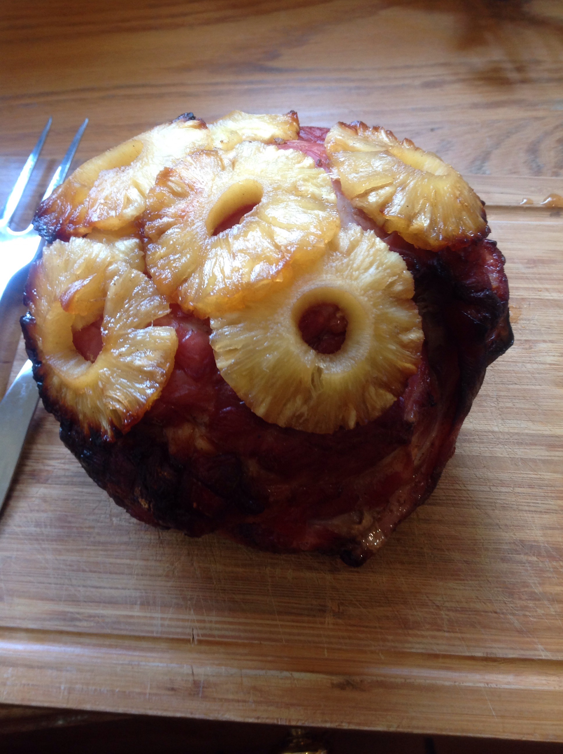 I cooked this gammon in coke, pineapple juice and moscavodo sugar and wrapped it tight in foil in the oven. It was so tender, really delicious.