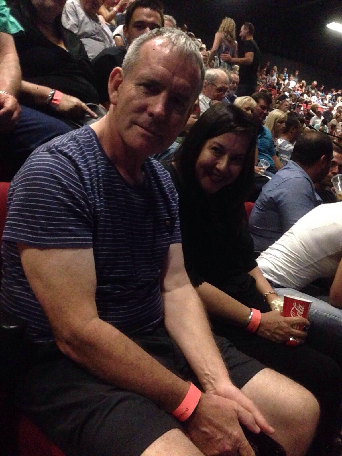 I could still hear her shouting and at one stage she got into another fight with the people in front of her. Caitlin said for a bit the silly cow was crying. Five minutes later she was loudly singing again. By the end her husband had left.