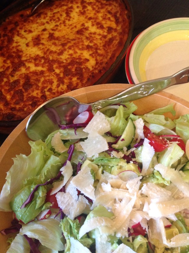 My cottage pie with caulimash and cheese was divine. I made a salad topped with Parmesan shavings and avocado to accompany it.