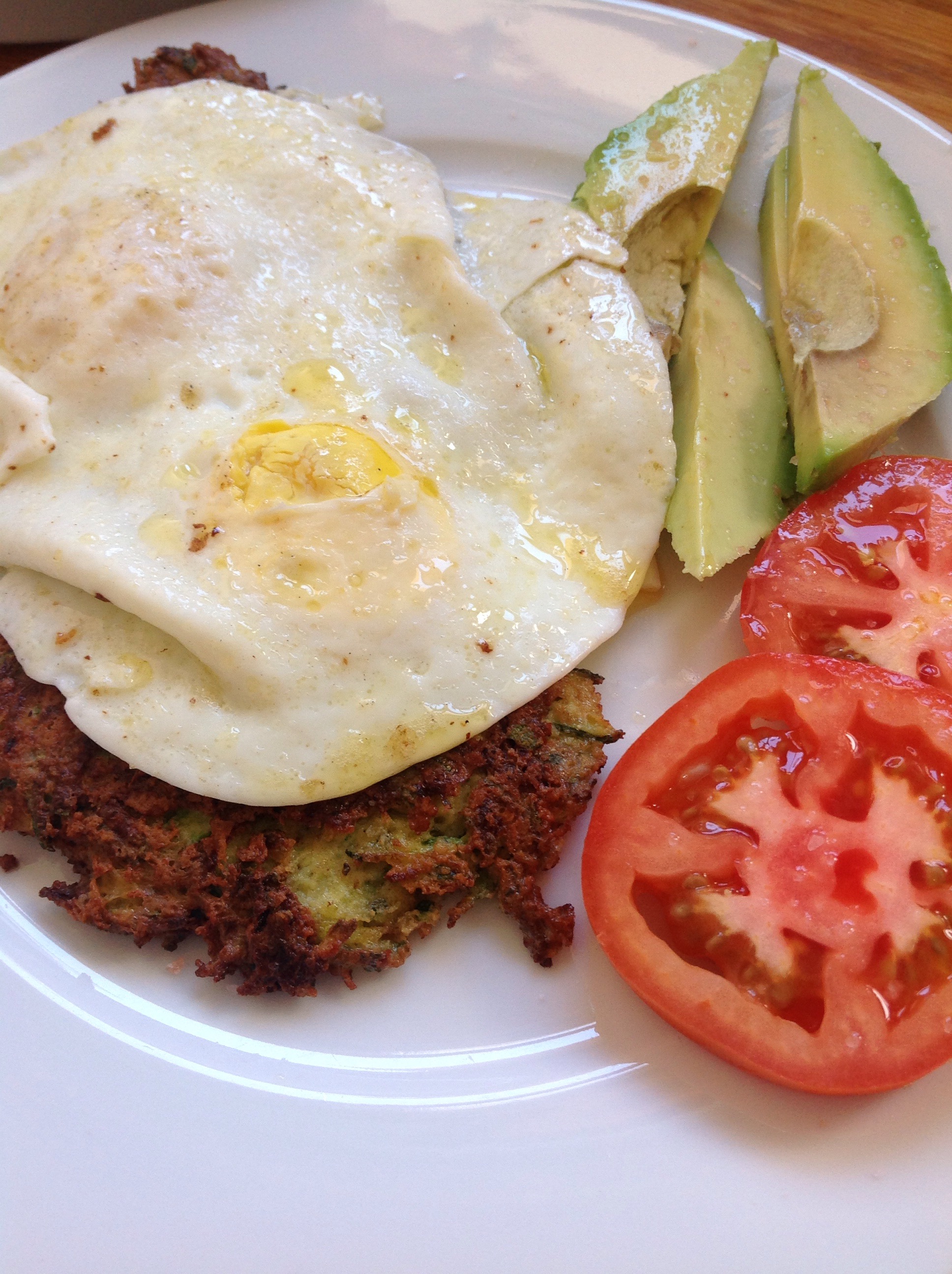 I made zucchini fritters topped with fried eggs, tomato and avocado, it was delicious.