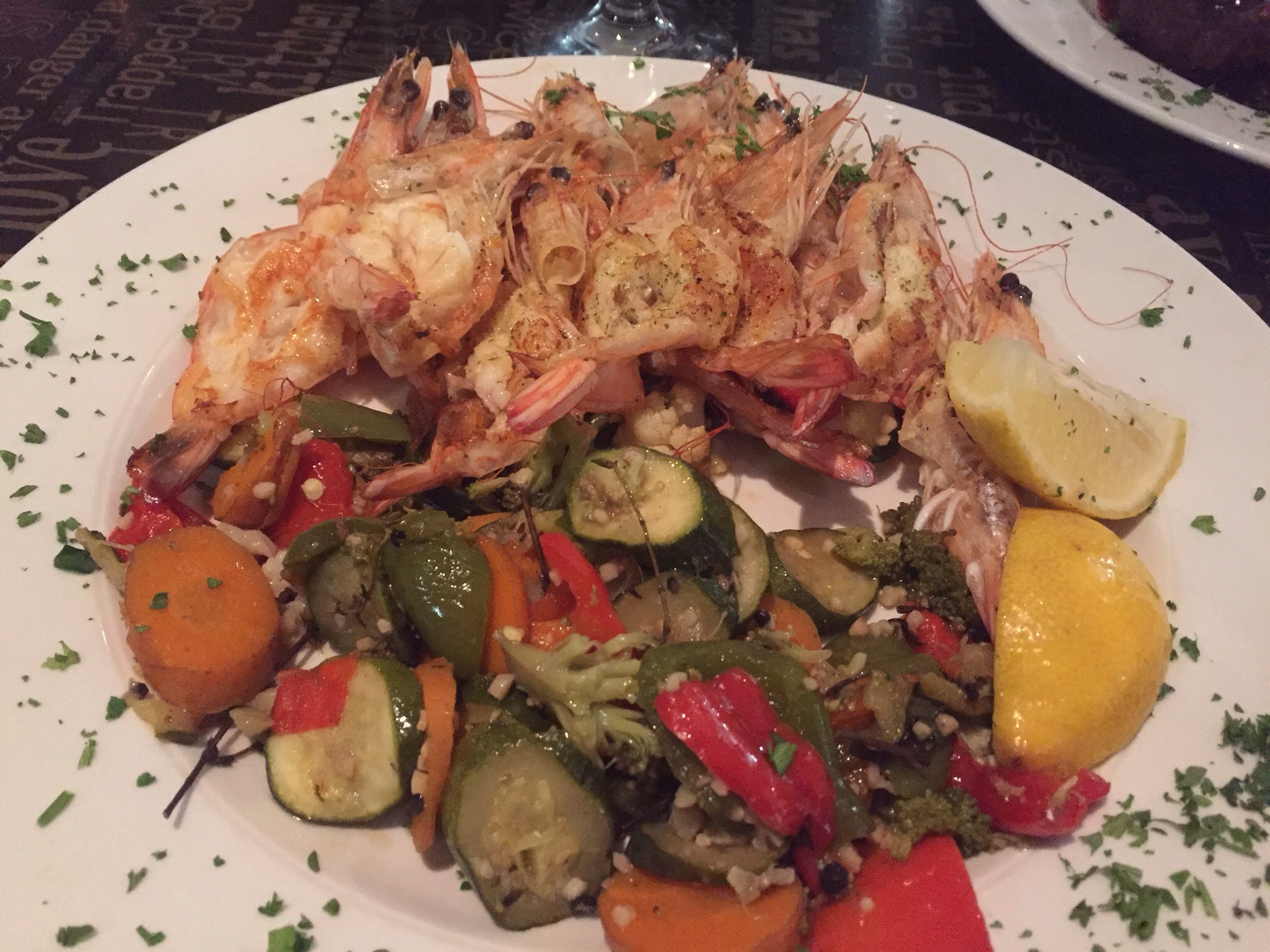 For my main I fancied prawns. I ordered the 12 Queen Prawns at R149. I opted for veggies as my side.