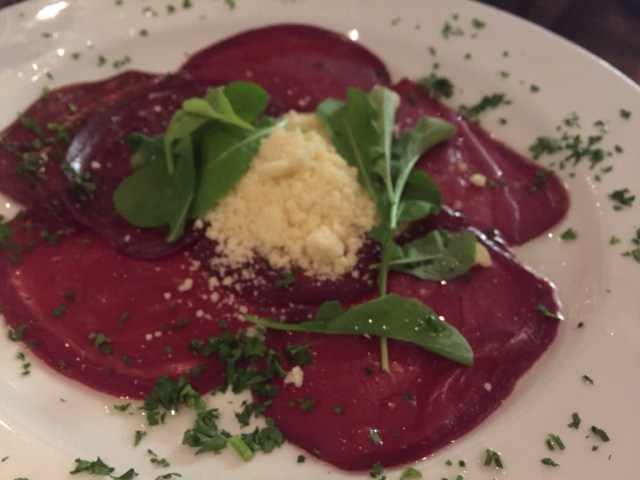 The carpaccio was only ok, primarily due to the ‘Parmesan’. I’ve never had commercially prepared ‘parmesan’ like that with carpaccio, it should be slivers of nice fresh REAL Parmesan cheese not dumped preservative laden stuff from a shaker.
