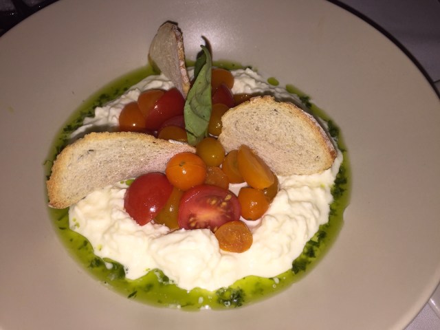For our Starter we all had the Salad Caprese. It had a creamy mozzarella which was unusual. It was more like ricotta. But it was good.