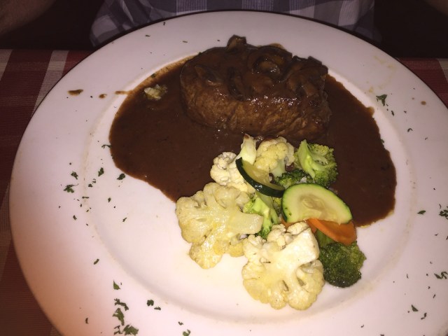 Norm was ravenous and had the Hollandse Biefstuk at R145. It’s cooked in brandy and he said the sauce could have reduced a bit more, the brandy tasted very strong.