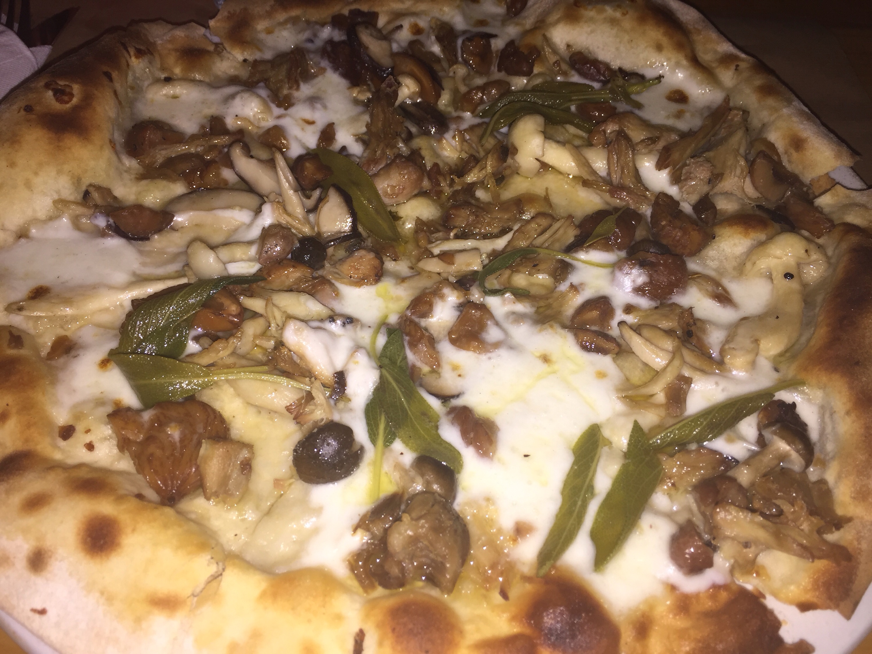I had the pizza that was on special. It had pulled pork, mushrooms, basil and walnuts.
